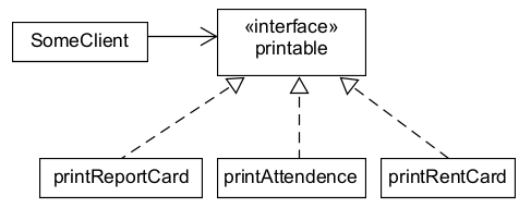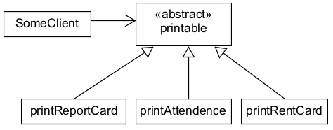 - OCP를 만족하는 어떤 학생이 오더라도 프린트할 수 있게 해주도록 설계한 디자인 - 변해야 하는 Student 클래스는 쉽게 변하도록 하였고, 변하지 않아야할 print 클래스들은 Student 클래스에 영향을 받지 않도 록 개별적인 클래스를 처리하지 않고, 인터페이스에서 구체적인 print 클래스를 캡슐화해 처리하도록 하였다. - 위와 비슷하게 상속을 통한 다형성으로도 OCP를 만족하는 설계가 가능하다.