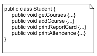 한 클래스에 너무 많은 책임이 부여되어 있다. Student 클래스에서 굳이 수행할 필요가 없는 print 메서드들을 분리하여 설계해 주어야 한다.
